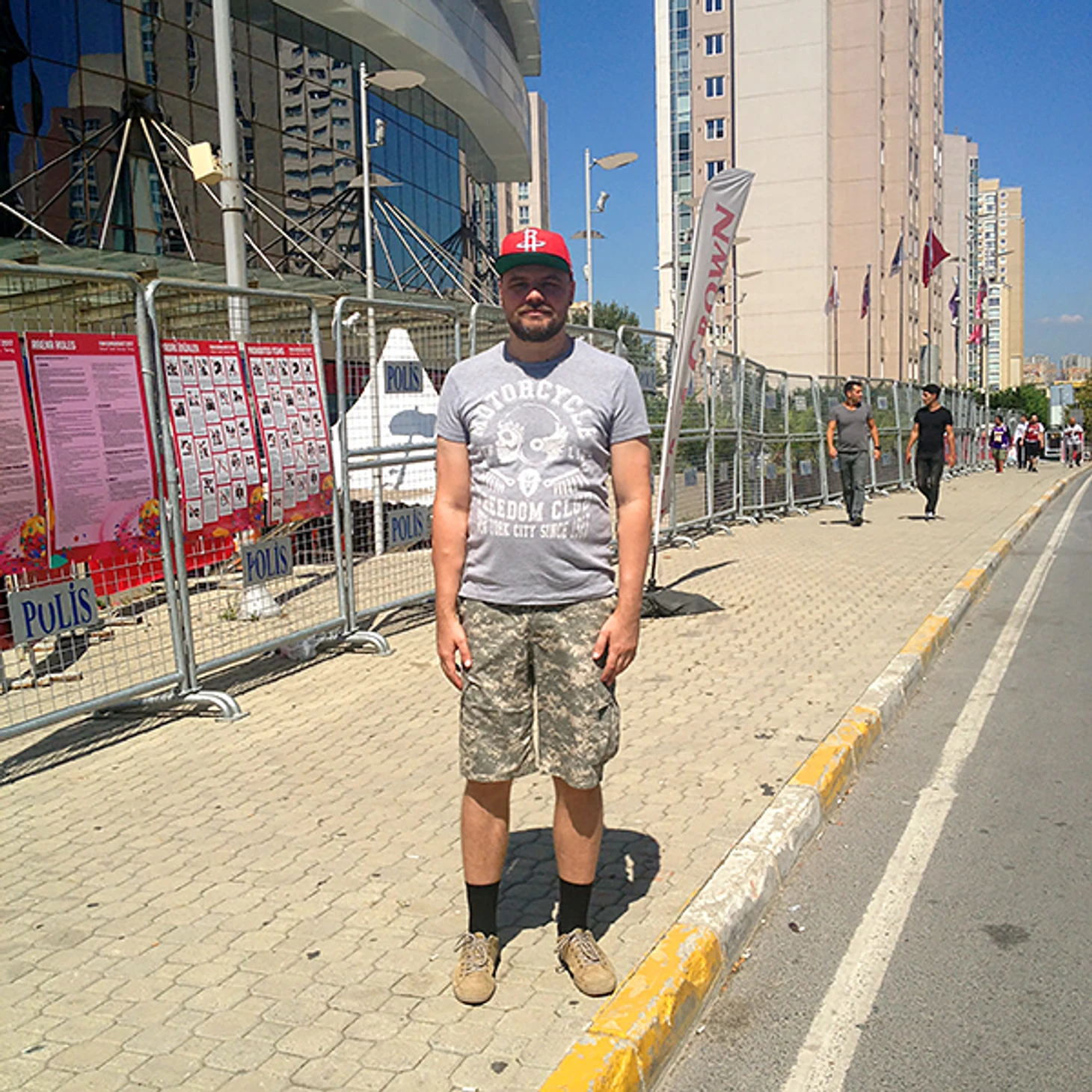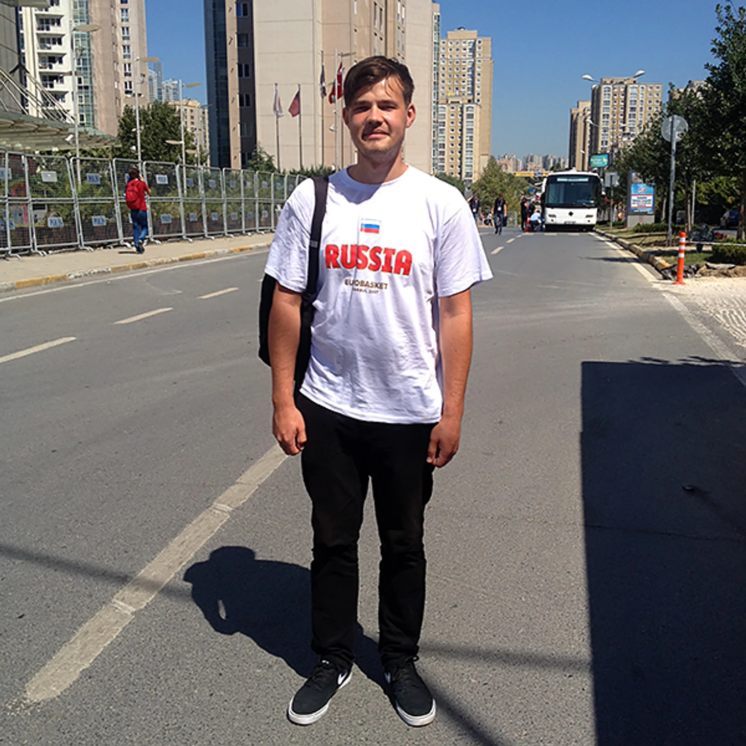 Баскетболом я увлекаюсь со школы. Мне нравится играть – играл в школе, когда приехал сюда, решил продолжать, привез кроссовки из России и начал играть здесь с турками. Турки играют очень быстро, темп быстрый, даже когда они играют на улице. Уровень приблизительно такой же, как в России, хотя, думаю, что если привезти сюда команду моих друзей, то мы бы у турок выиграли.
