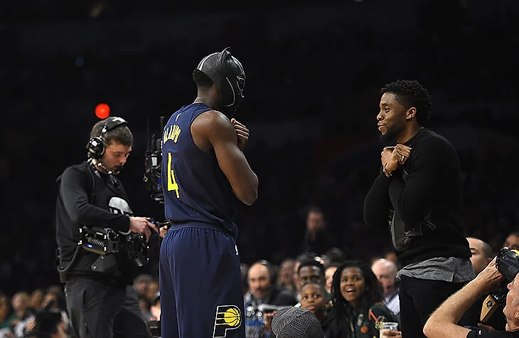 Джавэйл Макги сводил 150 ребятишек на просмотр в Окленде. Харрисон Барнс сделал то же самое для детей в Далласе. Раджон Рондо арендовал кинотеатр в Луивилле, чтобы кино могли посмотреть 300 детей. Игра самих баскетболистов в «Черную пантеру» не ограничивалась кучей костюмов на Хэллоуин: приветствие «Ваканда» стало частью предматчевого ритуала «Кливленда», Виктор Оладипо надел маску «Черной пантеры» для данка, Дэмиан Лиллард посвятил именную модель «Черной пантере», Уэнделл Картер пришел на драфт в костюме с соответствующими мотивами, а сами игроки пересматривали и пересматривали кино вновь и вновь.