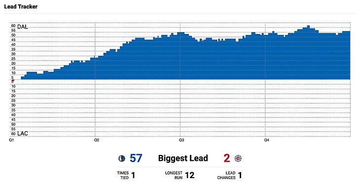Преимущество «Далласа» по ходу игры достигало 57 очков, но в итоге «Клипперс» сумели свести ее до не таких стыдных «-51».