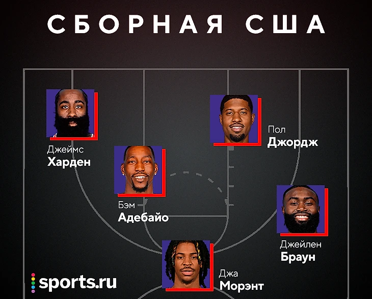 Уровень доступности: крайне сомнительный. За исключением Бэма Адебайо, к которому Грант Хилл мчится домой уже сейчас, здесь собраны сплошные «но», причем с обеих сторон (как игрока, так и приглашающей стороны): Джа Морэнт не годится из-за детского мозга, Пол Джордж в прошлый раз сломал ногу, хотя потом и ездил на Олимпиаду в Рио, Джейлен Браун теряет мяч даже на просторных площадках НБА, а у Джеймса Хардена есть в Париже более интересные планы.