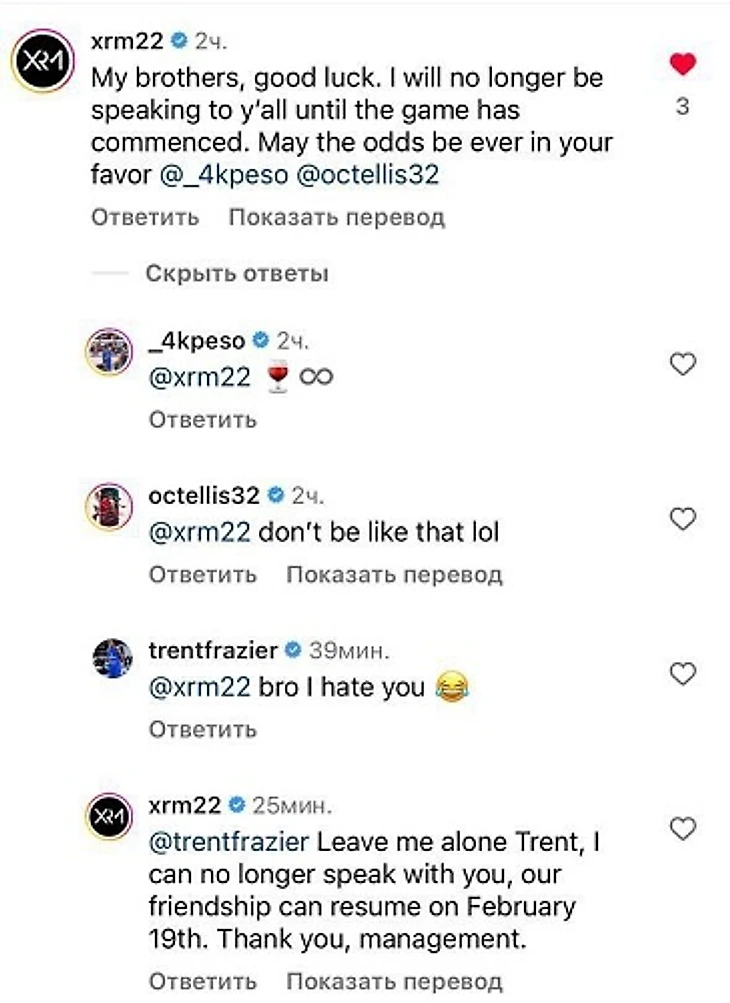 Ксавьер Рэтан-Мэйс незадолго до Матча звезд написал в социальных сетях другим его участникам Октавиусу Эллису, Джереймае Мартину и Тренту Фрэйзеру, что перестает общаться с ними вплоть до завершения игры.