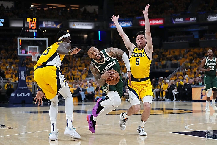 У «Индианы» была вторая атака регулярного сезона, но не из-за таланта исполнителей, а из-за концептуальной структуры. «Пэйсерс» навязывают сверхбыстрый баскетбол (они вторые по скорости игры в лиге), а в серии с «Милуоки» оказалось, что они (одни из худших на подборах в регулярке) еще и доминируют на щитах против пенсионерской бригады. Как результат, «Индиана» совершила 105 бросков за матч (43% с игры) против 88 у соперника (47% с игры).
