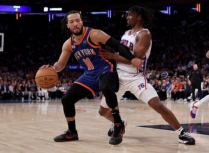 «Нью-Йорк» мог задуматься о втором раунде, когда за 28,9 секунды до окончания четвертой четверти попадание Майлза Макбрайда отодвинуло оппонента на 6 очков – 96:90. Было ощущение, что «Филадельфия» выдохлась примерно так же, как это было в концовке предыдущей игры: Джоэл Эмбиид был бесполезен на одной половине (1 из 4) и абсолютно вреден – на другой, где в него бил Джейлен Брансон, «76-е» допустили 7 потерь за 12-минутку, а чудесный источник под названием Тайриз Макси иссякал.