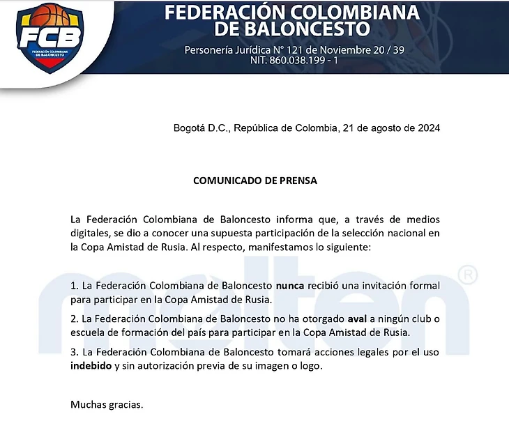 На это РФБ ответила «подтверждением», что переговоры о приезде национальной команды велись с самой что ни на есть настоящей Федерацией баскетбола Колумбии.