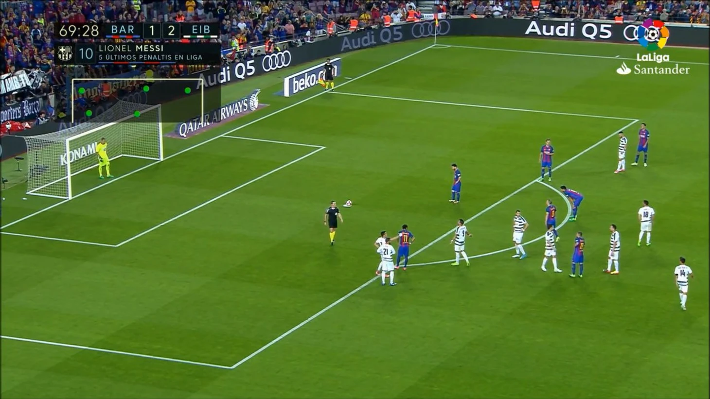 В прошедшем сезоне в рамках Ла Лиги Месси не реализовал лишь один пенальти из семи. И произошло это в последнем туре в матче против "Эйбара". Не знаю совпадение это было или нет, но все предыдущие, к тому моменту, пять ударов Лионеля Месси были точными и производил он их в разные зоны. Об этом свидетельствовала инфографика во время трансляции матча.