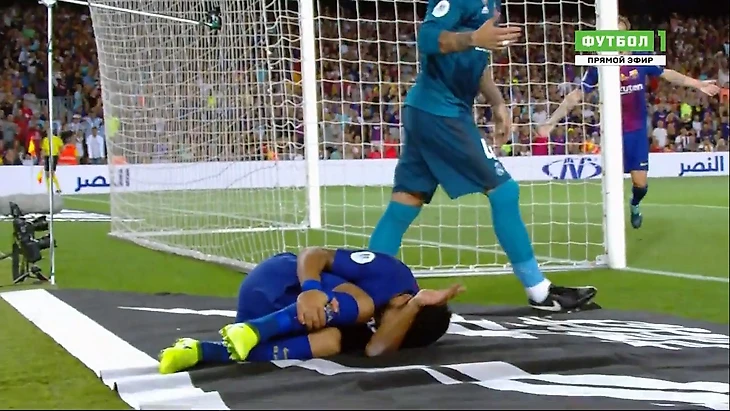 Но и начал изображать невыносимую боль. Хотя на повторе было четко видно, что в моменте с падением уругвайца никакого контакта с вратарем не было.