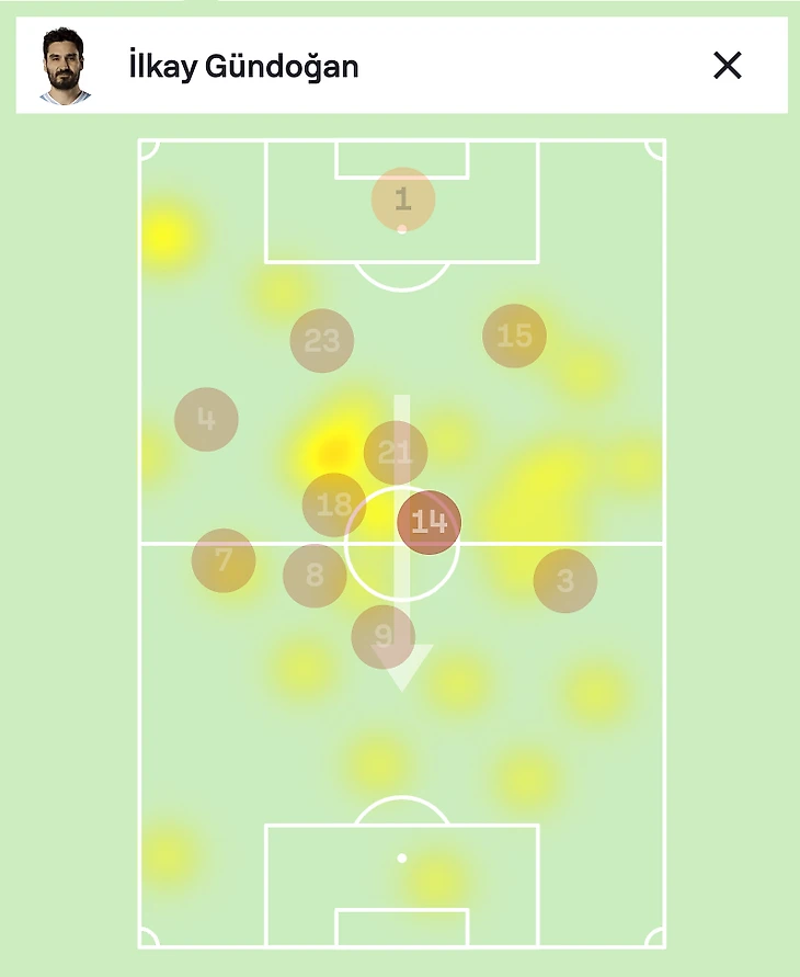 Алехандро Бальде в свои 19 лет является одним из самых важных футболистов нынешней «Барселоны», без него схема Хави будет уже не так хороша. У игрока и раньше было много пространства на фланге, но теперь его стало еще больше. В прошлом сезоне Гави хоть и номинально, но все же играл на левом фланге, а вот Гюндоган совсем по другому двигается на футбольном поле. Его усредненная позиция показывает, как часто он делает предпочтение в пользу игры в центре, ему комфортнее играть под нападающим и он намного лучше при игре с мячом. Но и движение опорной зоны «Барселоны» тоже изменилось (об этом чуть дальше).