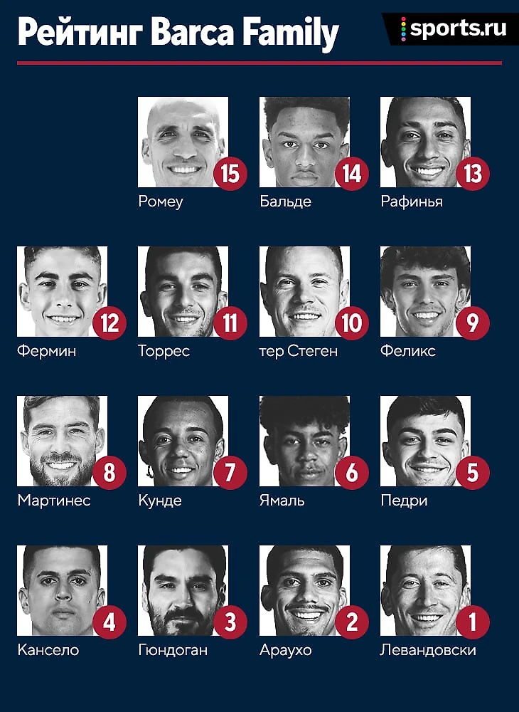 7. Жюль Кунде – полностью провалился на позиции центрального защитника, однако вовремя был отправлен на правый фланг и выдал ассист на Левандовски. 6. Ламин Ямаль – долго мучался, пока команда старалась делать на него навесы, но когда игра перестроилась, то в на свет пролились все самые незаурядные способности вингера. 5. Педри – все еще физически тяжело играть такие интенсивные матчи, но влияние на игру ощутимо. 4. Жоау Канселу – не совсем понятно, зачем нужно было отправлять португальца на левый фланг, но свой уровень он выдержал вне зависимости от позиции на поле.