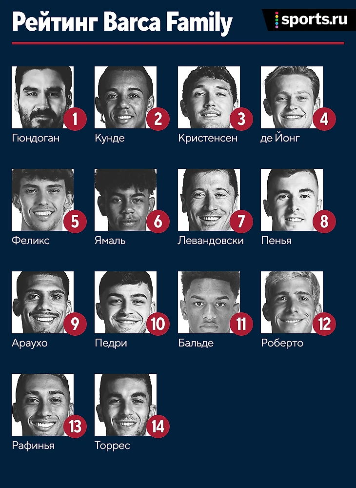 7. Роберт Левандовски – момент с голом стал чуть ли не единственным успешным действием поляка, однако в этом моменте он разобрался должным образом и забил очень важный гол. 6. Ламин Ямаль – смог внести в игру нотки своего разнообразия, усилить давление на фланге и забить значимый для себя гол. 5. Жоау Феликс – вот тот самый футболист, которого мы видели в начале сезона. Сегодня вошел в игру с необходимым желанием и мог не только записать ассист на свой счет, но и забить как минимум один гол. 4. Френки де Йонг – был признан лучшим игроком по итогу матча, но показалось, что его ближайшие партнеры сделали чуточку больше в этой игре.