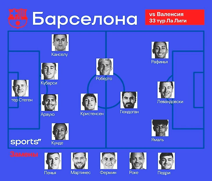 Трио атаки тоже кажется неизменным. Феликс и Торрес останутся опцией на второй тайм, а Рафинья и Ямаль начнут со стартовых минут. Где-то тут нужно найти игровые минуты для Витора Роке, но пока ситуация с молодым бразильцем выглядит не лучшим образом.