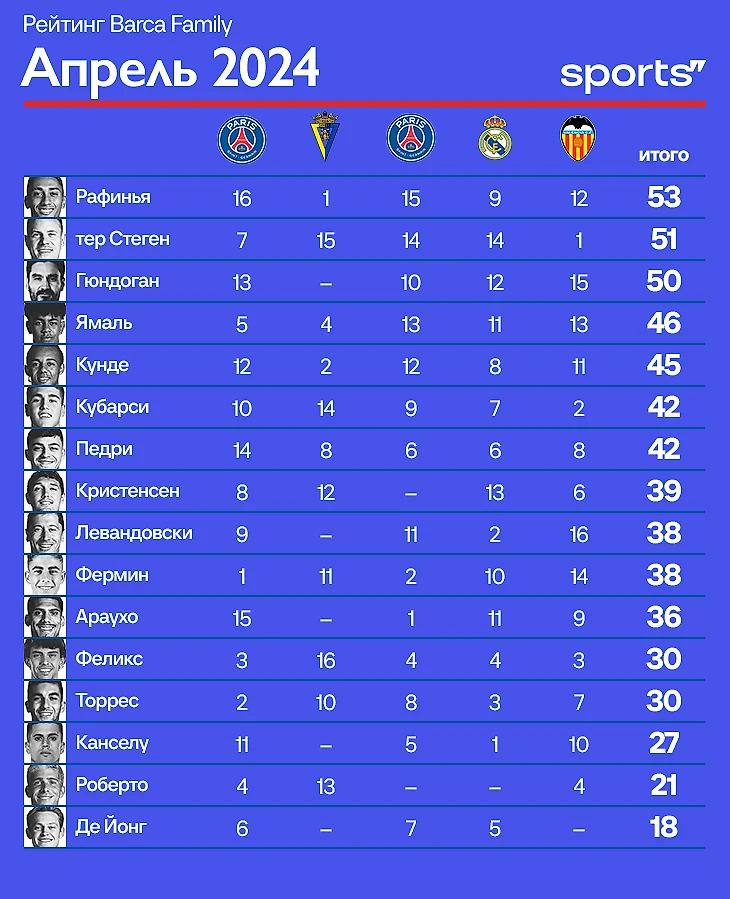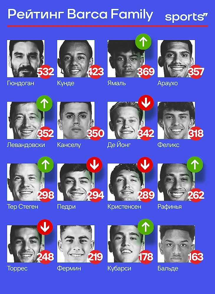 Илкай Гюндоган и Жюль Кунде уже вне досягаемости, но вот за третью позицию в оставшихся играх развернется настоящая борьба. Пока туда неожиданно залетел молодой Ламин Ямаль, но шансы еще есть у Рональда Араухо и Роберта Левандовски.