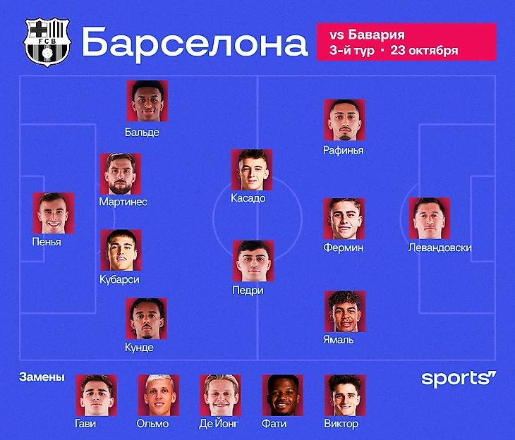 Педри выходит в старте на 100%. Так же высока вероятность появления Марка Касадо. Но кто будет третьим? Дани Ольмо и Гави еще не готовы играть с первых минут, а ситуация с дискомфортом Френки де Йонга остается загадкой.