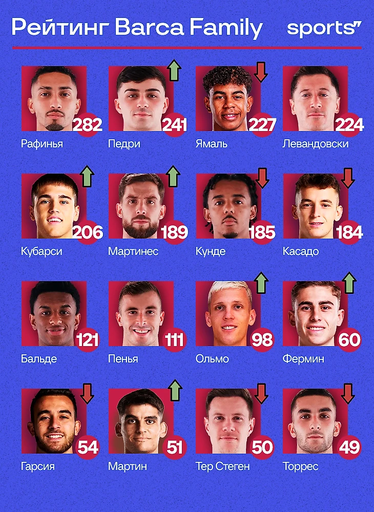 Рафинья –лучший, тут без вопросов, а вот Педри по чуть-чуть смог добраться уже до второй позиции – очень крутой результат. Да, во многом способствовала травма Ламина Ямаля, но и самой заслуги полузащитника в этом много.