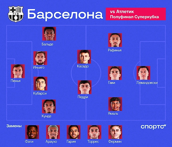 Все источники сообщают, что Ламин Ямаль в полном порядке и готов выходить со старта. Но есть еще один вариант для разнообразия – Рафинью могут отправить играть под нападающим, именно там он провел прошлый матч против «Атлетика» и провел на высоком уровне.