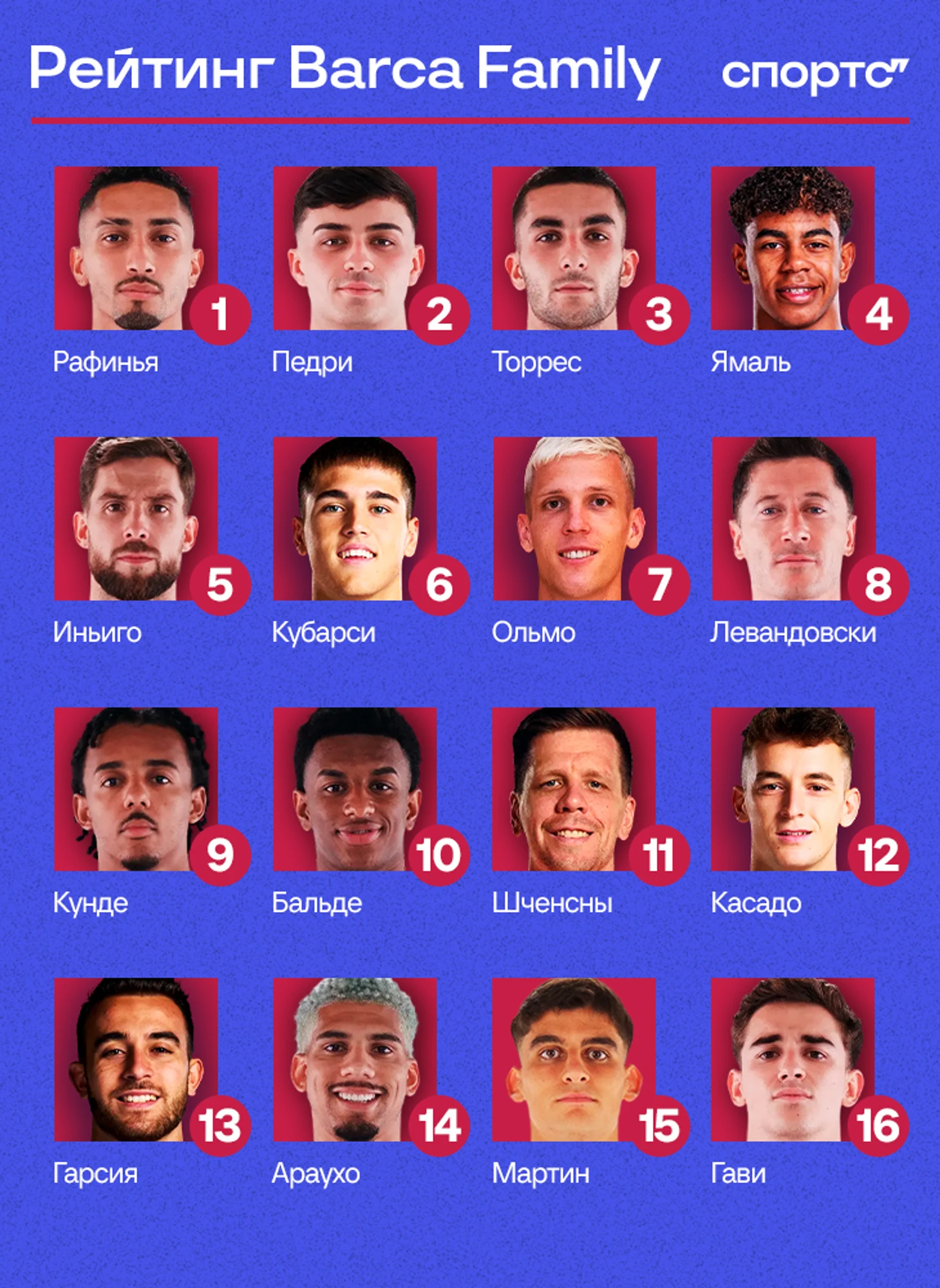 Рафинья-Педри-Торрес-Ямаль-Левандовски-Иньиго-Кунде-Кубарси-Бальде-Щесный-Ольмо……