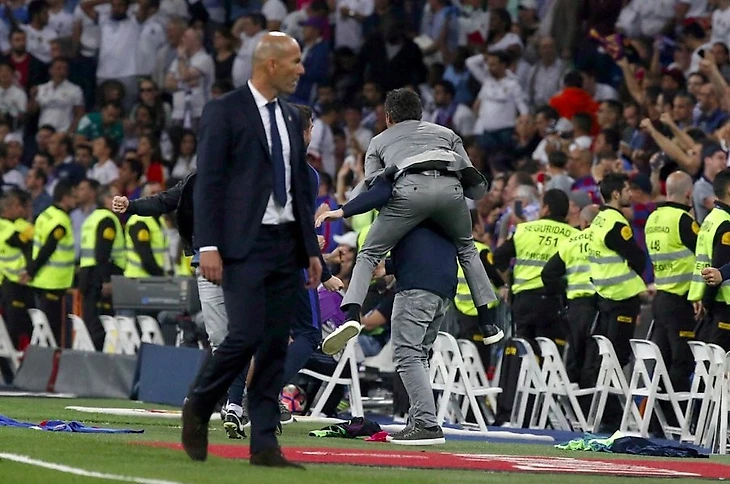 Первым плеснул в костёр бензин Иван Ракитич. На 73-й минуте хорват пальнул с левой из-за штрафной в дальнюю девятку и едва удержался на ногах от радостного прыжка Месси. Следом решил отличиться Серхио Рамос. Откровенно грубая игра в ноги Месси избавила защитника хозяев от необходимости спасать отечество на 90+ минуте — прямая красная, которая при 1:2 сильно усложняла Зидану и компании задачу по исправлению положения.