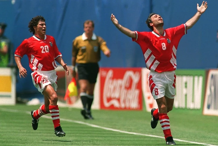 — О! Выбить действующего чемпиона… Во-первых, это было большой честью для моей страны. Понимать, что мы можем победить такую команду… У нас было несколько игроков, которые играли в Германии, они прекрасно знали их менталитет. Они говорили нам, что мы можем победить легко. Были Клинсманн, Маттеус, Бреме, Бодо Иллгнер… Мы должны были играть разумно и выиграли, потому что Бог велик. Они выходят вперед после пенальти, которого не было. Потом я заработал несуществующий штрафной, и мы сравняли счет. И тут уже Лечков забивает победный гол, и мы выбиваем их.