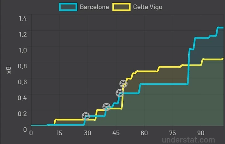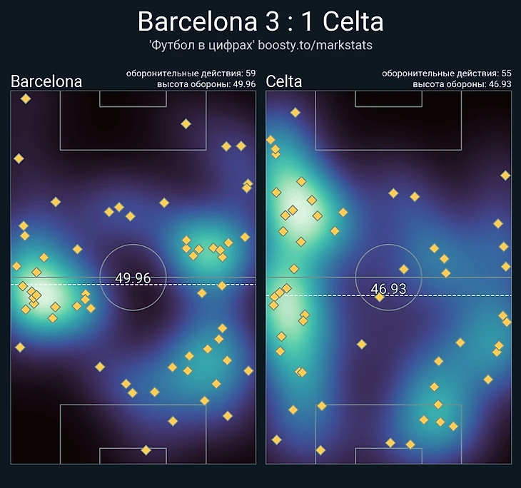 Хотелось бы ещё раз отметить, что игра была в общем-то равная. Конечно, «блауграна» сама на ровном месте создала несколько опасных моментов «кельтам», которые, в свою очередь, не были столь щедры с каталонцами. Но это уже проблемы самой «Барселоны». Многие статистические показатели наталкивают на главную мысль – «сине-гранатовые» победили только потому, что просто были лучше в реализации моментов. За это нужно сказать отдельное спасибо Пьеру-Эмерику, который оформил дубль, забив первый гол из весьма неудобного положения, полулёжа (0,11 xG). Последнее время габонца начали критиковать (хотя и аккуратно) за невзрачную игру, но эти два мяча вывели его на красивую цифру – 0,8 голов за матч в Примере. Едва ли кто-то ожидал такого в январе, в момент его прихода в Клуб.