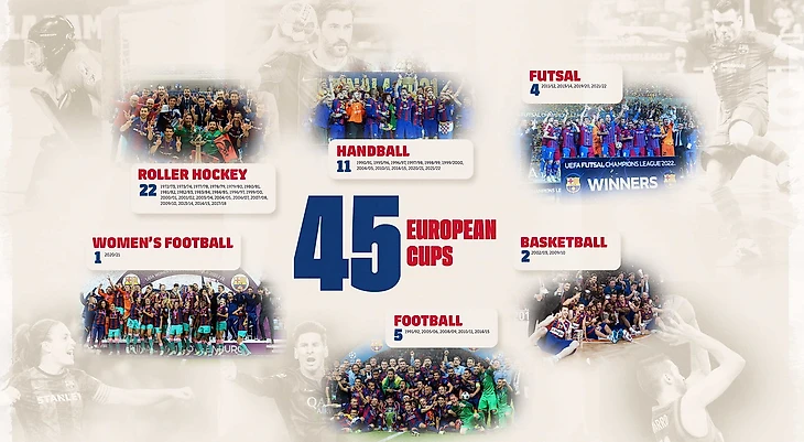 Как мы уже когда-то отмечали, «Барселона» – это не просто футбольный клуб, а мультиспортивная организация, которая добивается успеха в различных видах спорта на международной арене. После недавних побед гандбольной и футзальной команд в Лиге чемпионов, количество еврокубковых трофеев «Барселоны» достигло красивой цифры – 45.