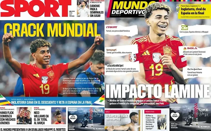 1️⃣ Спортивные газеты по всему миру восхищаются Ламином Ямалем. К похвалам игроку присоединился и тренер Жироны «Мичел», который также рассыпался в комплиментах Нико Уильямсу и Родри. Ламиномания достигла таких масштабов, что в прессе уже обсуждают Ямала как кандидата на «Золотой мяч».