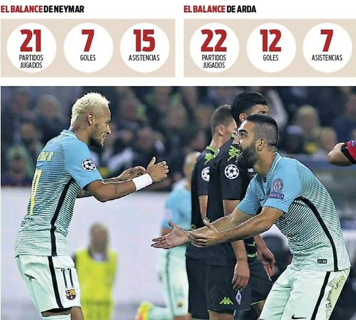 Статистика Неймара и Турана в текущем сезоне