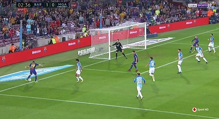 Жерар Деулофеу открыл счет в матче с "Малагой" уже на второй минуте. Однако, перед тем, как Люка Динь сделал голевой навес, мяч пересек лицевую линию поля. Грубая ошибка арбитров в пользу каталонцев.