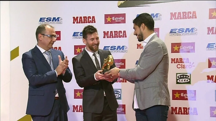 Луиса Суарес передает Месси "эстафетную палочку". В прошлом году обладателем приза был именно уругваец.