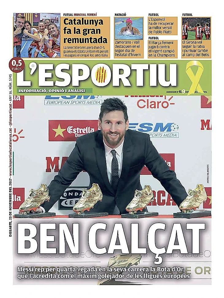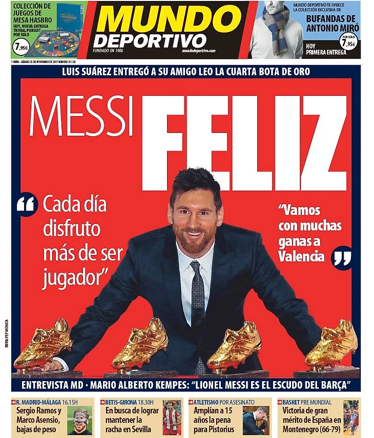 Сегодняшние выпуски данных изданий посвящены Лео Месси, который 24 ноября 2017 года стал обладателем «Золотой бутсы».