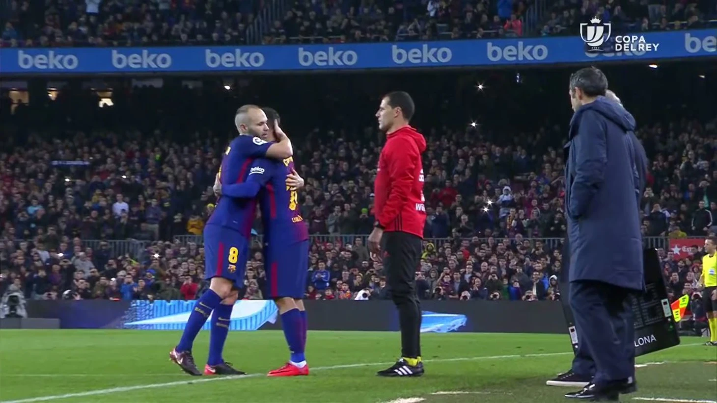 Мгновение спустя бразильский полузащитник заменит именно Андреса Иньесту. ВИДЕО