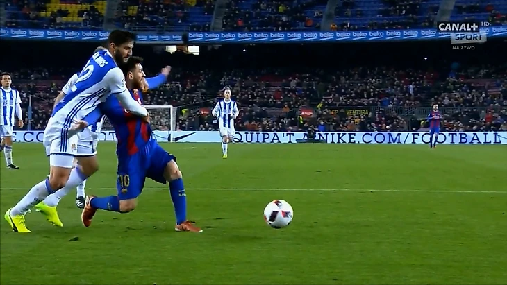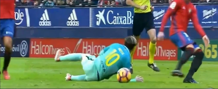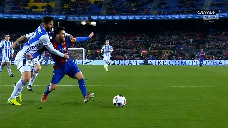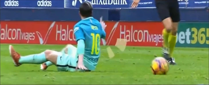 В одном из поединков Кубка Испании-2016/17 Месси сделал рывок со своей половины поля на 93-й минуте матча, пытаясь при счете 5:2 в пользу своей команды забить еще один гол. Но защитник гостей в открытую придержал Лионеля руками в штрафной площади, не дав тому продолжить атаку.