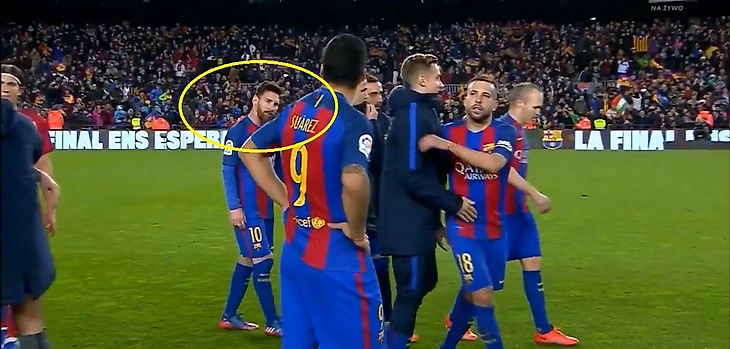 Своими благородными действиями Месси показывает пример всей команде и призывает партнеров вести себя также. В полуфинале Кубка Испании-2016/17 против мадридского "Атлетико" камеры запечатлели момент как после финального свистка Лео Месси жестом головы показал Суаресу, который был удален с поля во время матча, не вступать в конфликт с судьями.
