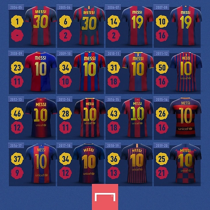 Статистика голов и ассистов Месси в Ла Лиге по сезонам