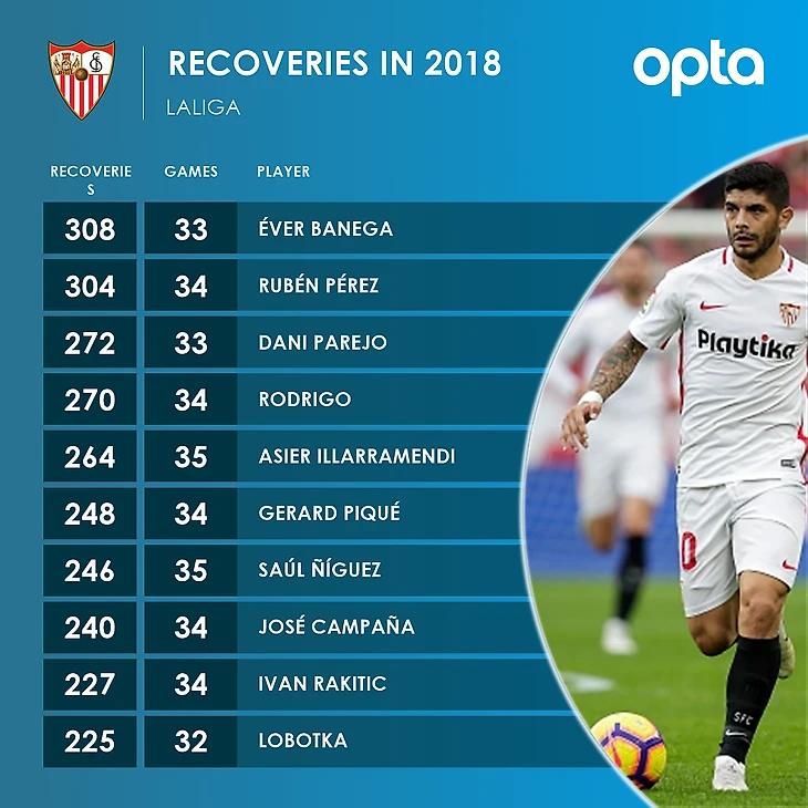 Opta опубликовала список лучших по подборам в 2018 году в Ла Лиге. Лидером стал хавбек "Севильи" Эвер Банега, второе и третье заняли полузащитники "Леганеса" и "Валенсии ".