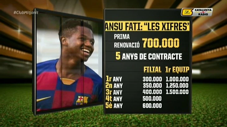 Детали контракта 16-летнего футболиста были обнародованы в каталонской телепрограмме Club de la Mitjanit.