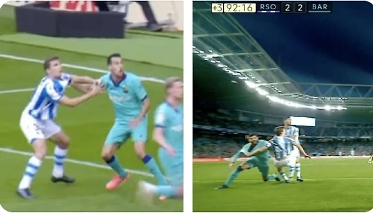 Напомним, на последних минутах игры главный арбитр Хавьер Альберола Рохас не назначил пенальти в пользу «Барселоны», когда защитника каталонского клуба Жерара Пике в штрафной площади схватил за футболку игрок «Сосьедада» Диего Льоренте.