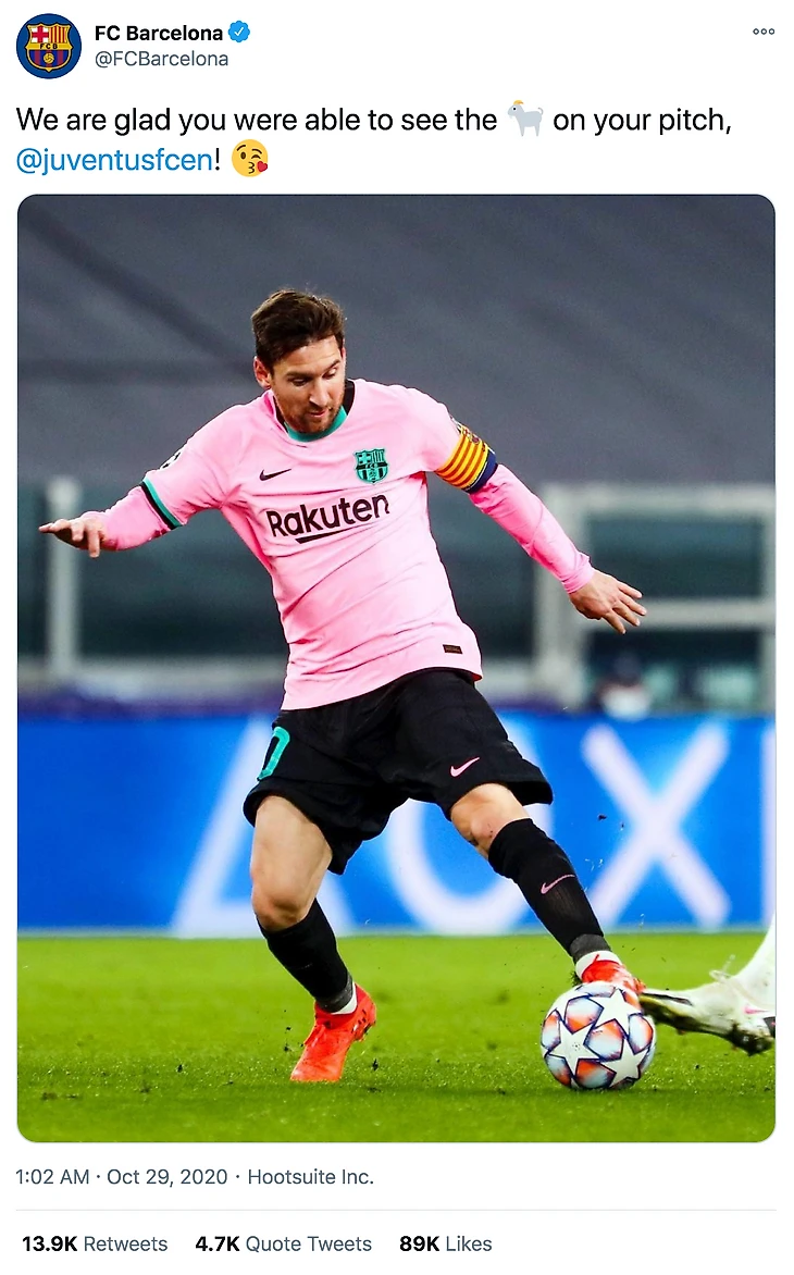 «Мы рады, что вы смогли увидеть GOAT (Greatest Of All Time) на своем поле, "Ювентус" 😘», - написал официальный аккаунт «Барселоны» в Twitter сразу после финального свистка.