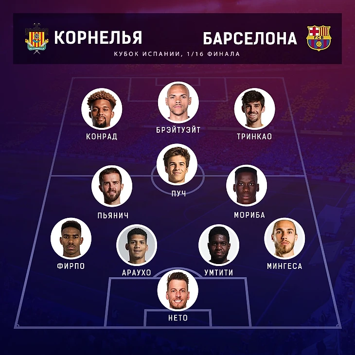 Пуч, Мориба и Конрад в стартовом составе. Ориентировочный состав «Барселоны» на игру с «Корнельей»