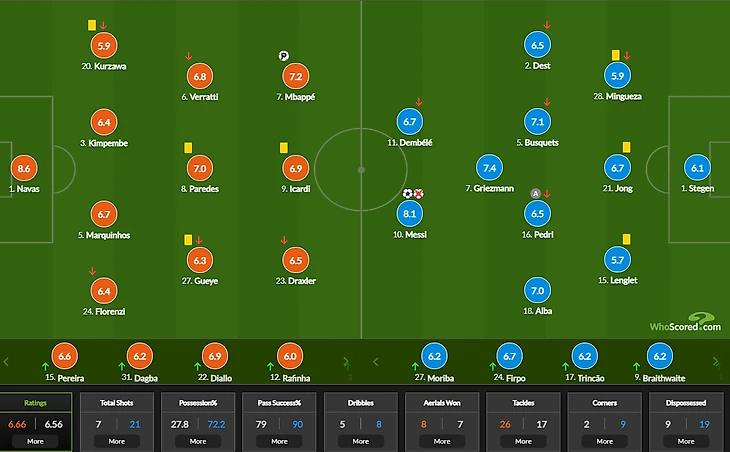 Далее ДеЙонг, после того как Мингеза поплыл и Куман его срочно заменил, Куман тем самым отправил играть ДеЙонга на роль центрального защитника, зная о том что из Фирпо защитник - никакой. А так , да, ДеЙонга очень не хватило в центре. Но этого многие не заметили, т.к. Бускетс с Педри отлично разгоняли атаки и опять же в некоторых моментах им Гризманн помогал. Гризманн даже подчищал за Бускетсом и Педри, когда от них пытался убежать МБаппе.