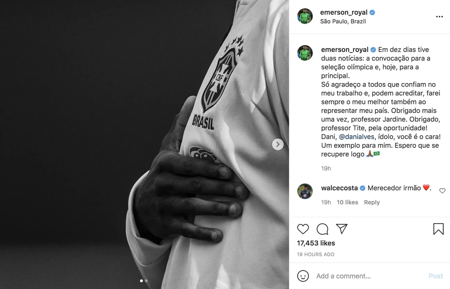 «Ты — кумир, пример для меня!». Эмерсон отправил вдохновляющее сообщение Дани Алвесу, которого заменил в сборной