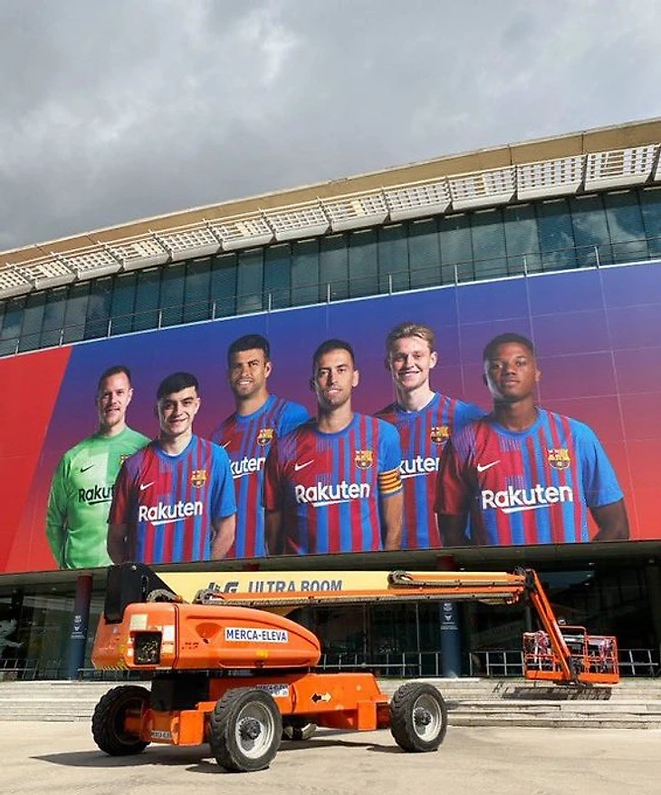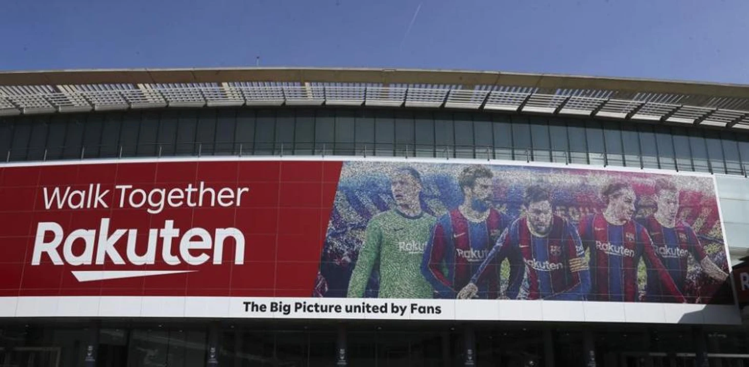 «Барселона» поместила Серджи Бускетса, Ансу Фати и Педри вместо Лео Месси и Антуана Гризманна на фасаде «Камп Ноу». Вот как сейчас выглядит баннер.