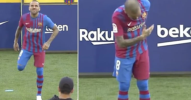 Продемонстрировав несколько классических трюков и приемов, Дани Алвес отправил мяч на трибуны «Камп Ноу» и начал делать растяжку, шутя о том, что он «слишком стар».