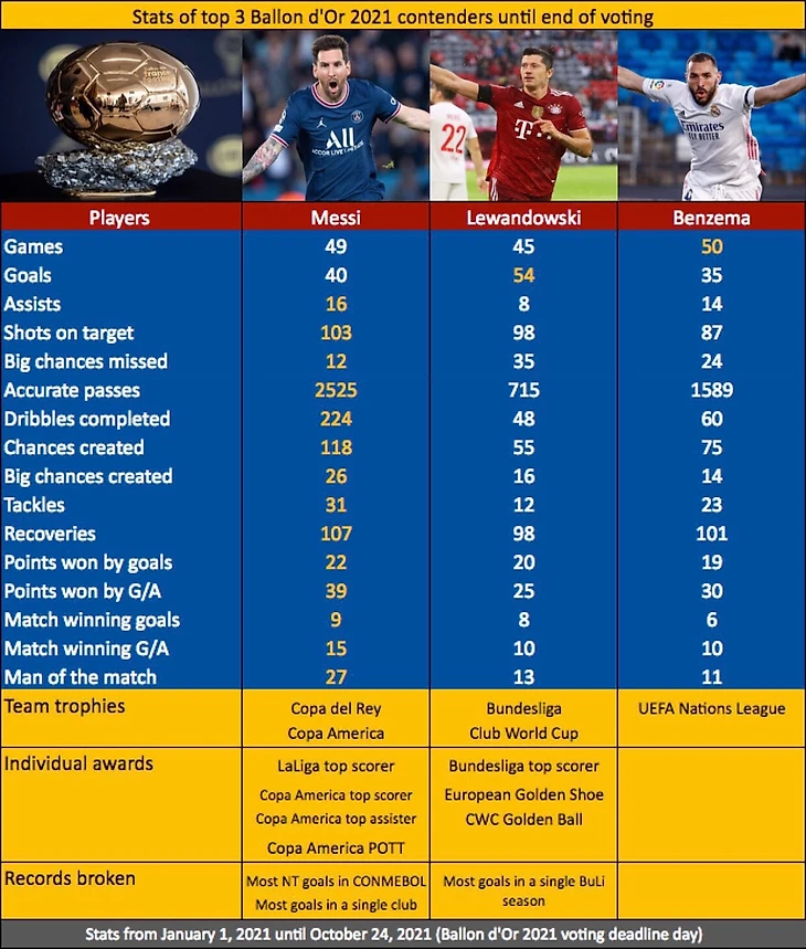 Роберт Левандовский и Карим Бензема были двумя нападающими, которые непосредственно соперничали с Лионелем Месси за его 7-й «Золотой мяч».