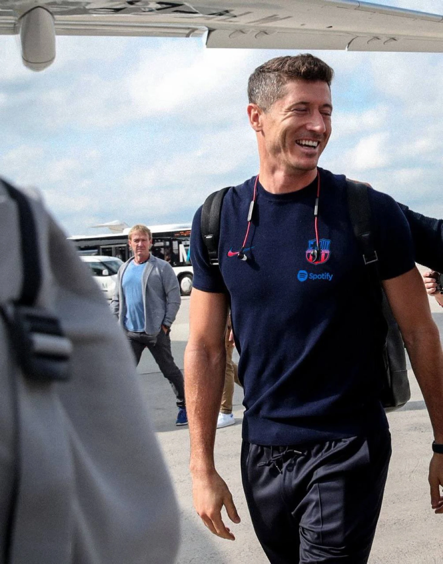 Левандовски вылетел в США после короткой встречи с руководством «Барселоны» в Испании, где ему вручили футболку нового клуба.