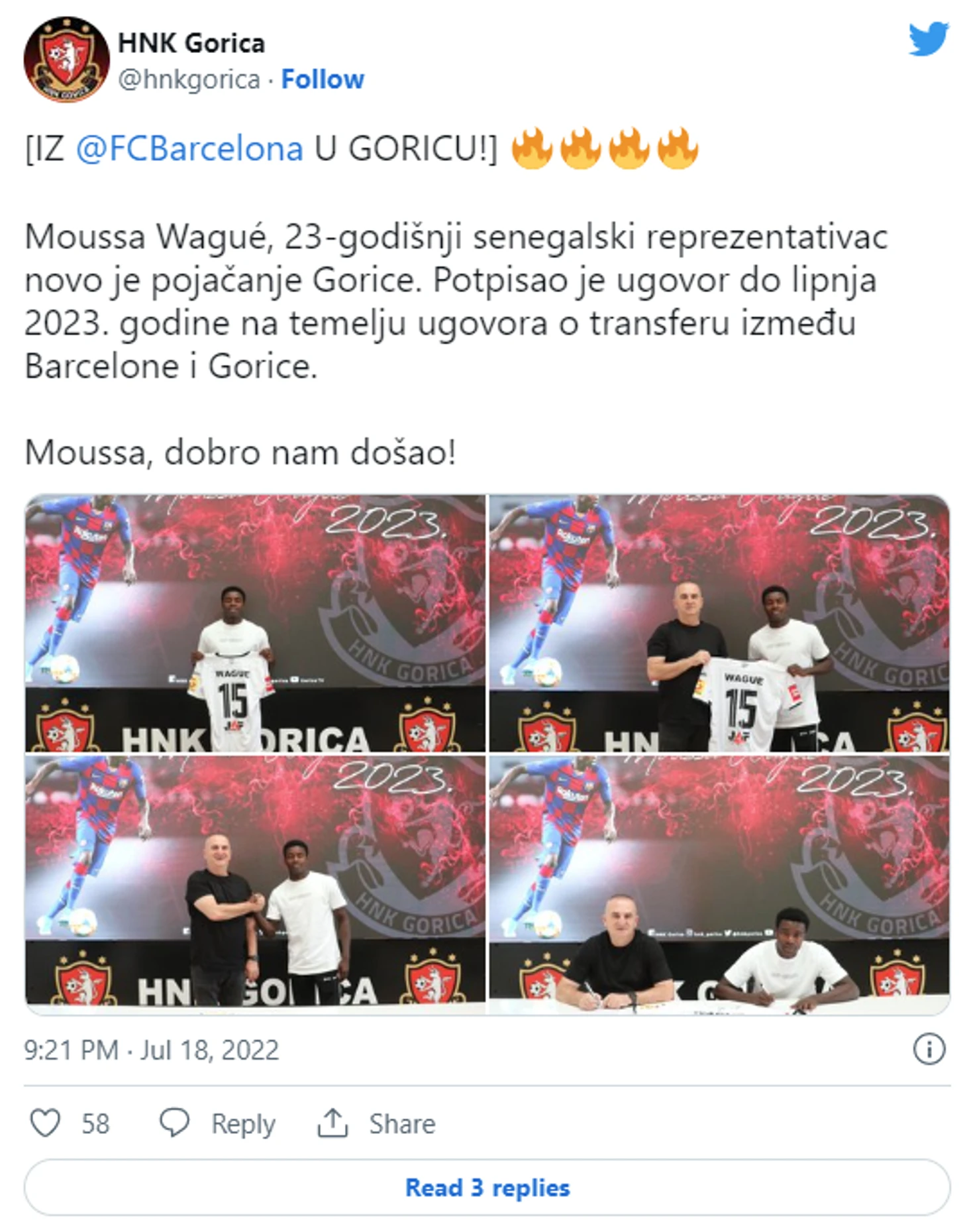 Мусса Ваге официально покинул « Барселону», подписав контракт с хорватским клубом HNK Gorica . 23-летний футболист подписал соглашение до 2023 года.