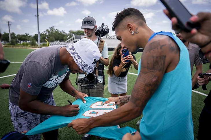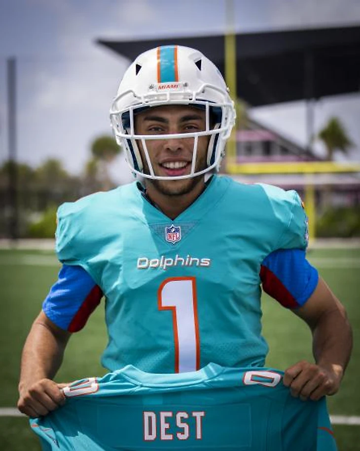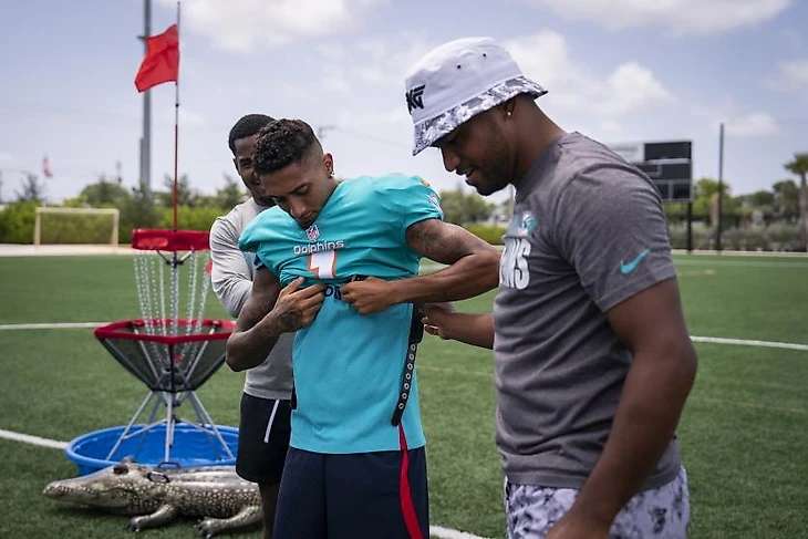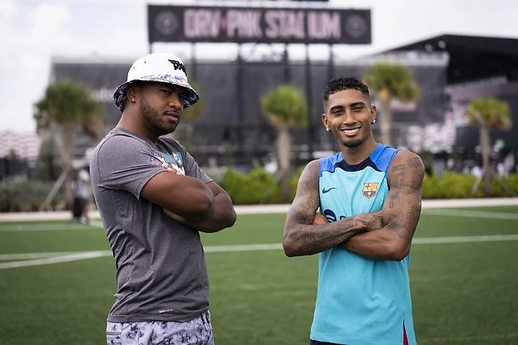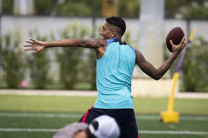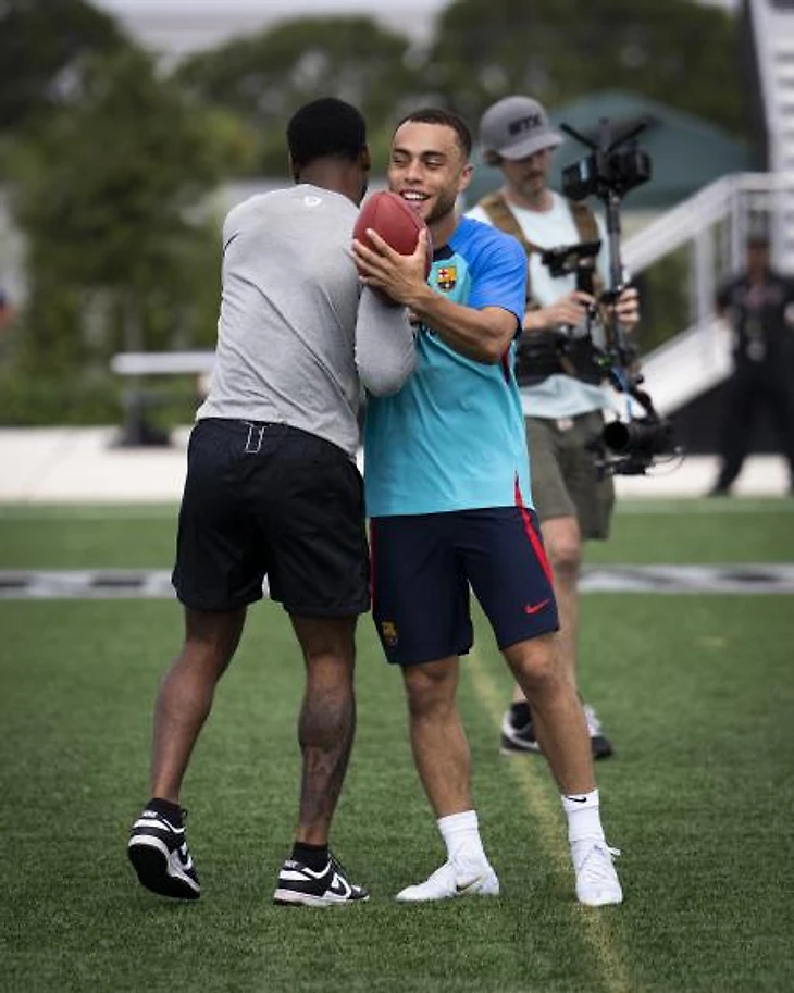 Рафинья и Дест попробовали себя в американском футболе. «Майами Долфинс» уже задумываются о победе в Супербоуле
