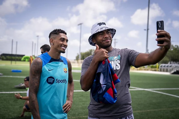 Игроки «Блауграны» в рамках своего выставочного тура по Северной Америке провели тренировку с футболистами «дельфинов» Джейленом Уоддлом и Туа Таговайлоа, а затем обменялись памятными футболками.