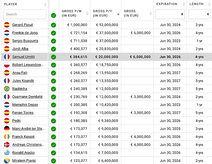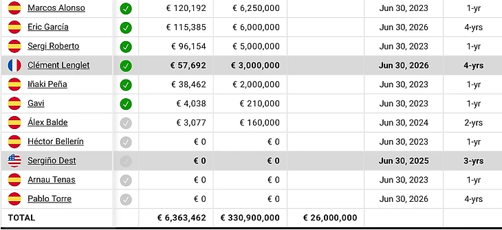 Несмотря на то, что Самюэль Умтити уехал в аренду в «Лечче», всю зарплату ему выплачивает каталонский клуб. А обязательства по контракту Клемана Лангле, который уехал на время в «Тоттенхэм», клубы покрывают совместно, но все же большая часть остается за «Барселоной».