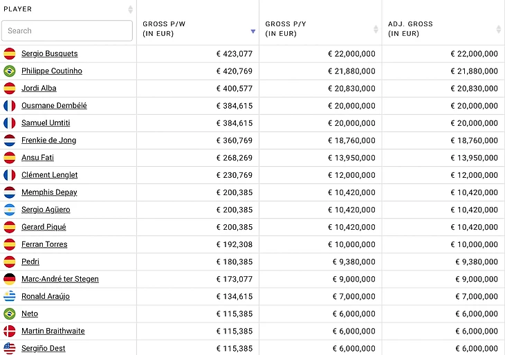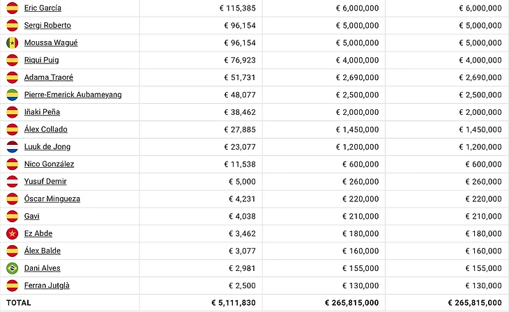 Список зарплат «Барселоны» за сезон-2021/22: