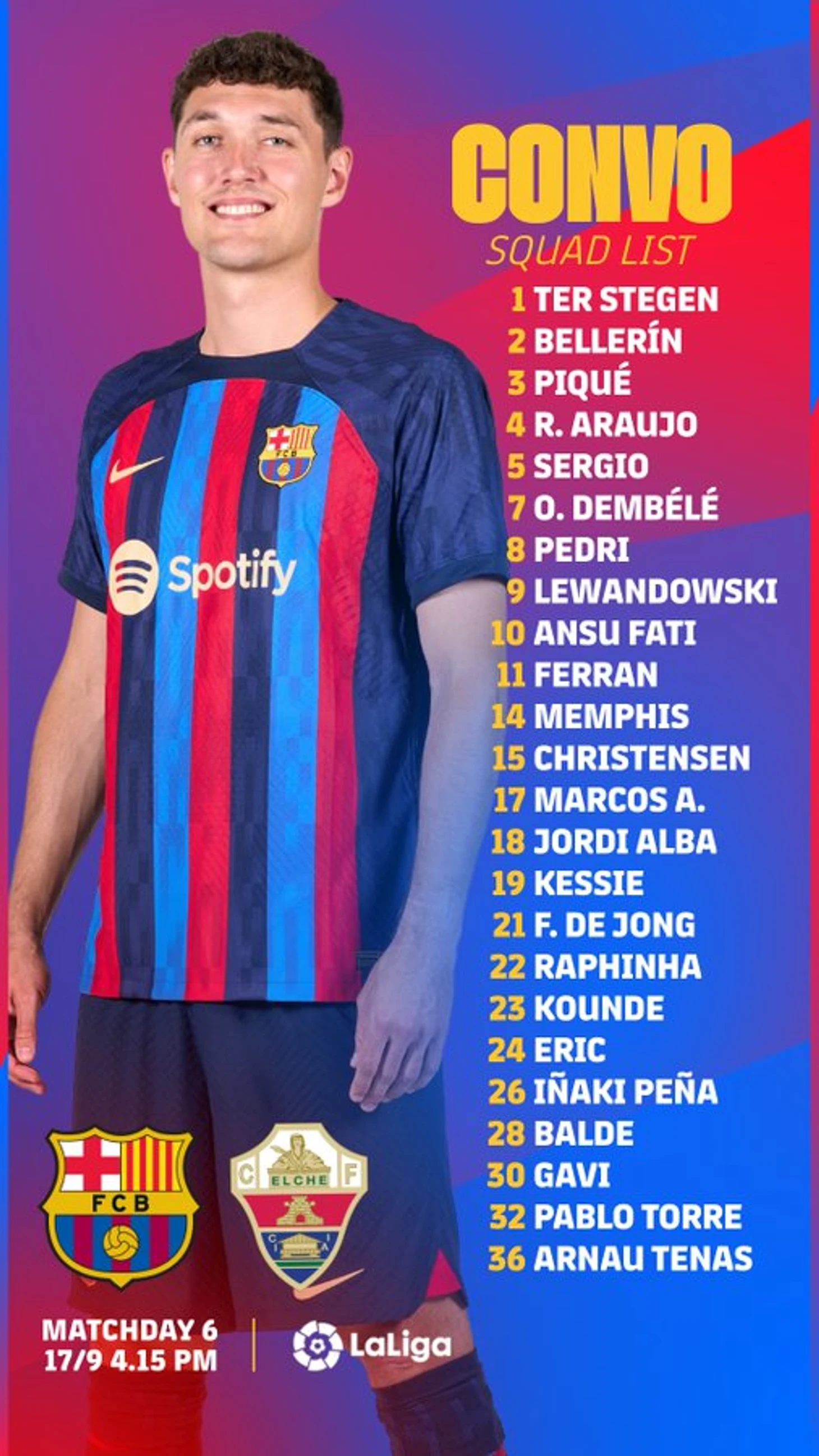На счастье Хави, он не сможет рассчитывать только на одного игрока − Серджи Роберто. У игрока появились какие-то проблемы со здоровьем и ближайший тур он пропустит. Хави уже назвал состав из 24 человек, которые готовятся к субботней игре.