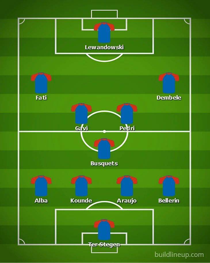 «Барселона»: Тер Стеген; Бельерин, Араухо, Кунде, Альба; Гави, Бускетс, Педри; Фати, Левандовски, Дембеле.